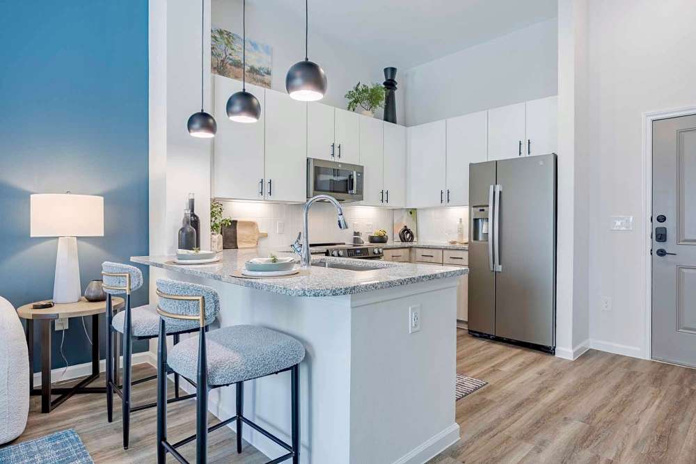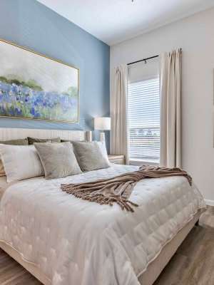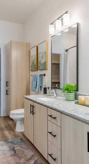 Experience elevated living at The Abbey at Veramendi, where our one, two, and three bedroom residences seamlessly blend hill country charm with contemporary elegance. Crafted with great attention to detail, each home features custom two-tone cabinetry, granite countertops throughout, and soaring high ceilings, creating the perfect harmony of comfort and sophistication in your new sanctuary.